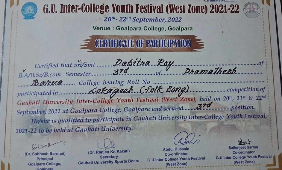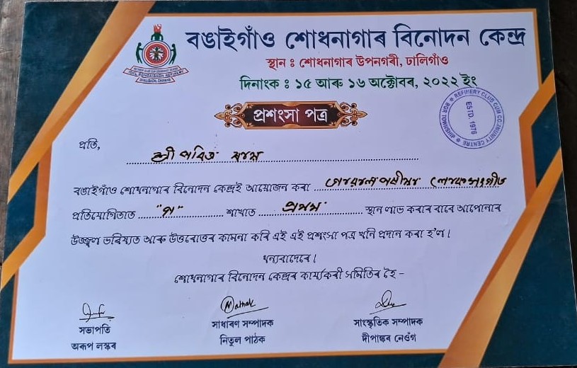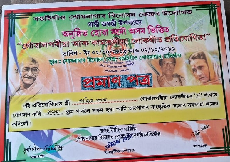 Pabitra Roy, 1st Prize in Goalpariya Lokageet